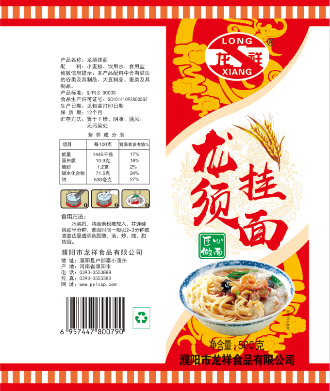 濮陽(yáng)市龍祥食品有限公司位于河南省濮陽(yáng)縣戶(hù)部寨鎮(zhèn)小濮州,始建于1994年,前期投資200萬(wàn)元,經(jīng)過(guò)幾年的努力,大力開(kāi)發(fā)市場(chǎng),由于市場(chǎng)的需求量急劇上升,出現(xiàn)供不應(yīng)求,于2004年擴(kuò)建,建成一座新型的現(xiàn)代化面粉加工企業(yè),并擁有全國(guó)先進(jìn)全自動(dòng)生產(chǎn)設(shè)備一套,產(chǎn)量由以前的100噸/天,提高到現(xiàn)在400噸/天。 2012年再次擴(kuò)大規(guī)模申請(qǐng)為濮陽(yáng)市龍祥食品有限公司,注冊(cè)資金500萬(wàn)元。2012年又投資800萬(wàn)元新建掛面生產(chǎn)線(xiàn)一條,日產(chǎn)掛面50噸。龍祥食品有限公司現(xiàn)有職工120余人,總工程師1人,專(zhuān)業(yè)技術(shù)人員10人,經(jīng)濟(jì)師1人,會(huì)計(jì)師1人,銷(xiāo)售人員2人,優(yōu)秀專(zhuān)業(yè)人員20余人。  龍祥公司自創(chuàng)建以來(lái),社會(huì)效益十分可觀(guān)。公司一直以“今天的質(zhì)量,明天的市場(chǎng)”為信念,“一切為了客戶(hù)需求,竭誠(chéng)追求完美品質(zhì)”為企業(yè)宗旨,走專(zhuān)業(yè)化經(jīng)營(yíng)和職業(yè)化管理的路子。